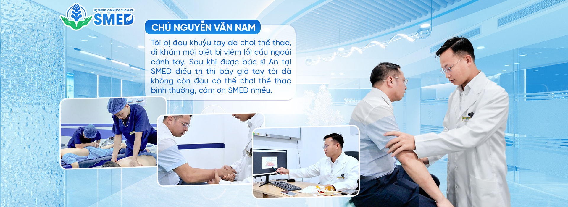 ” Trước đây tôi bị thoát vị đĩa đệm, đau đến mức chỉ cần cúi người nhẹ là lưng đã đau buốt. Nhưng sau khi được người quen giới thiệu qua SMED tôi đã có thể sinh hoạt trở lại bình thường, ăn ngon ngủ ngon, thật sự cảm ơn bác sĩ rất nhiều. “