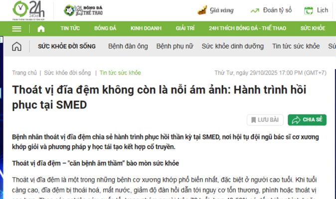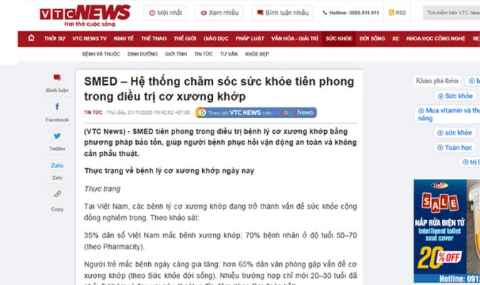 Vì sao VTC News đánh giá SMED là đơn vị dẫn đầu trong điều trị bảo tồn xương khớp?